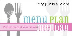 I've decided to join the Menu Plan Monday at Organizing Junkie. I'm usually good about getting my menus planned in advance, but there are some weeks that I drop the ball and we end up eating take-out. Take-out isn't good for my waist line or my pocketbook, so becoming a part of this is my motivation to make sure it gets done.